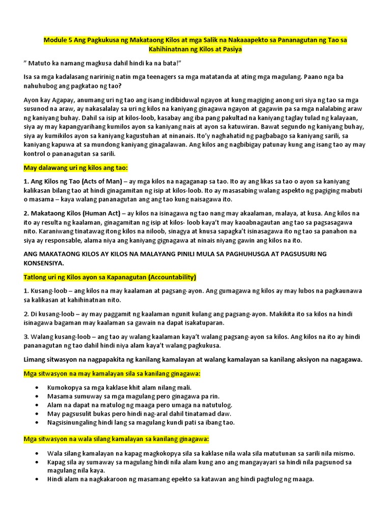 Ito ay sa kadahilanang ang niyaay nakatuon at kumikiling sa mabuti sa kanya na nakikita niya bilang tamaa. Batayan ng Mabuti at Masamang Kilos Ayon kay. Kusang-loob di kusang-loob at walang kusang-loob.